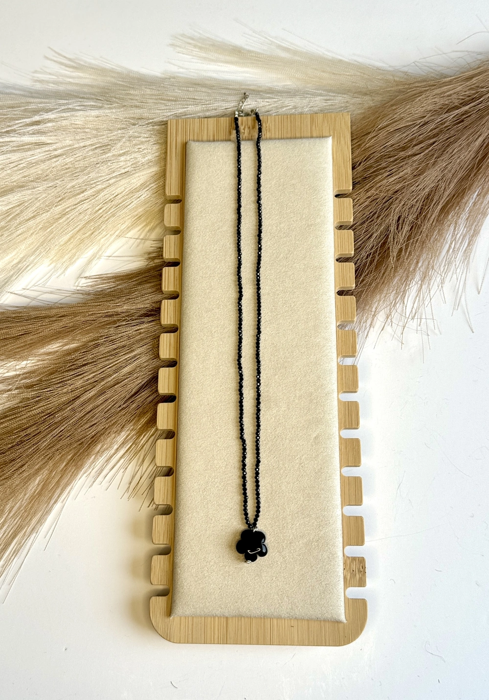 Cada collar es diferente. ¡ Único en su especie! Este collar está hecho con una combinación de piedras preciosas Espinela y Onyx . Todos los collares están ensartados con un hilo de seda natural y cierre de plata. Cuando se lleva este collar, el trébol del collar está exactamente a la altura de nuestro corazón, y esto hace que las propiedades de ambas piedras preciosas se vuelvan más poderosas.